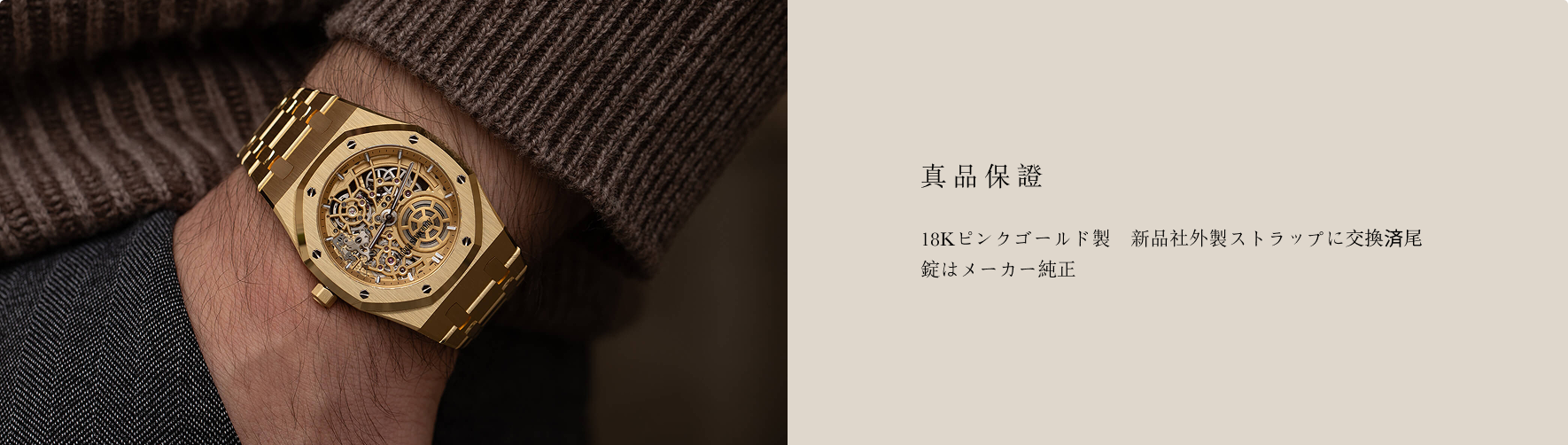 18Kピンクゴールド製 新品社外製ストラップに交換済